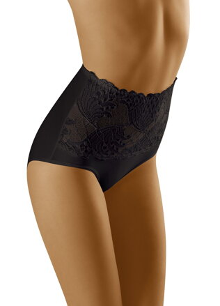 Dámské kalhotky KAJA díky svému vyššímu pasu jemně zeštíhlují postavu. Přední část tvoří ažurová krajka a speciální tyl s tvarovacím efektem. Zadní část je jednoduchá a hladká.